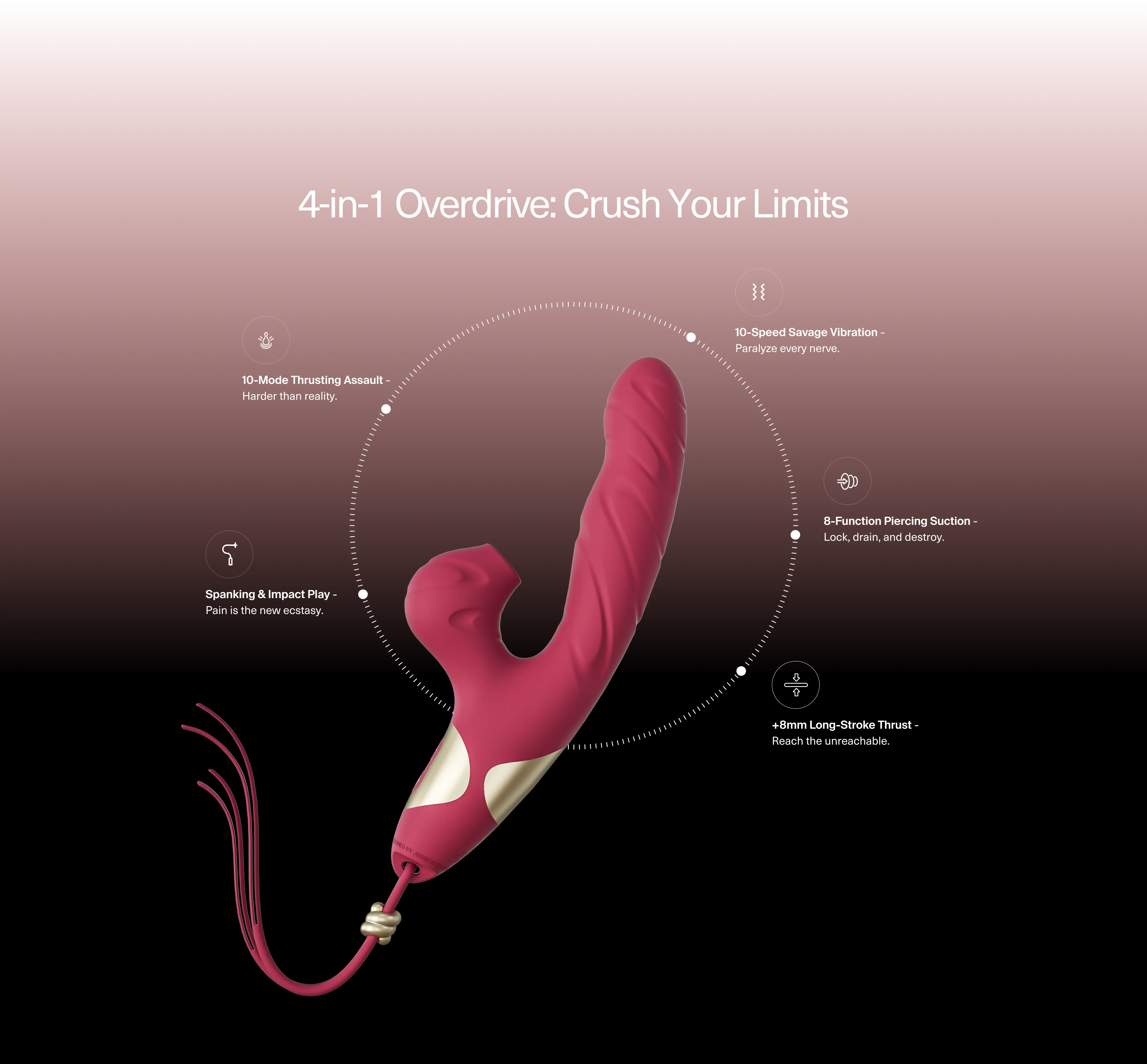 • 10 Thrusting Modes – From rhythmic tease to savage power. Dictate your own destruction
